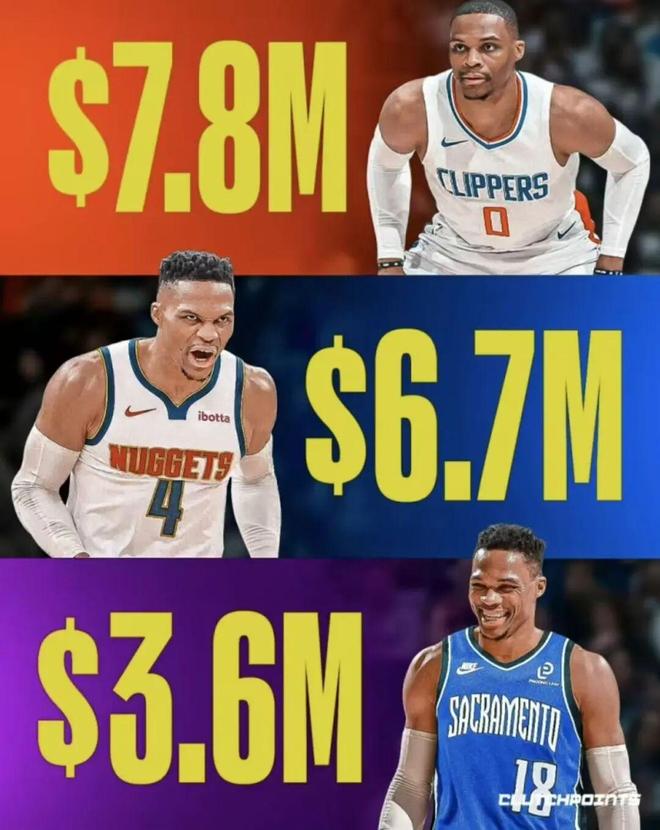 離開湖人后威少換的三支球隊(duì)都是底薪
